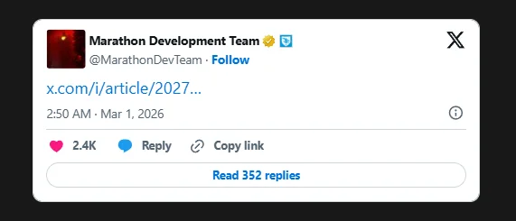 „Iako mnoge od ovih promena neće stići do samog dana izlaska, Marathon je dizajniran kao platforma koja će se konstantno menjati i evoluirati uz pomoć zajednice.“