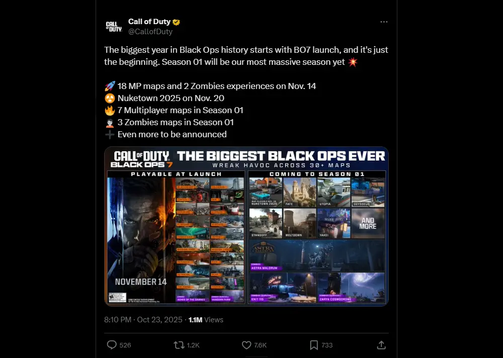 - Nuketown 2025 (verzija iz Black Ops 2 iz 2012.) stiže 20. novembra, samo šest dana nakon lansiranja igre.