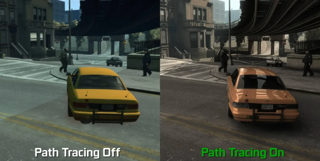 - Globalno osvetljenje: Svetlost se prirodno odbija od površina, menjajući ton čitavih ulica.