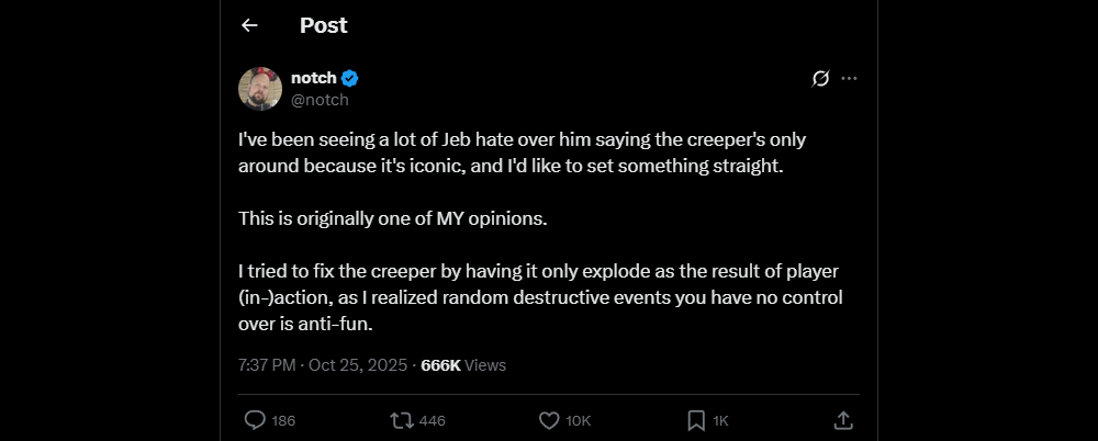 Jeb-ovi komentari naišli su na negativne reakcije – Creeper je ikona, a mnogi optužuju Mojang da čini Minecraft „previše bezbednim“. Ali… čak i Notch slaže se sa Jeb-om!